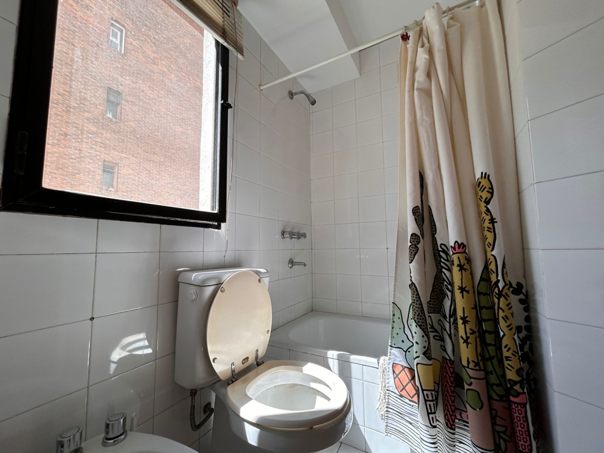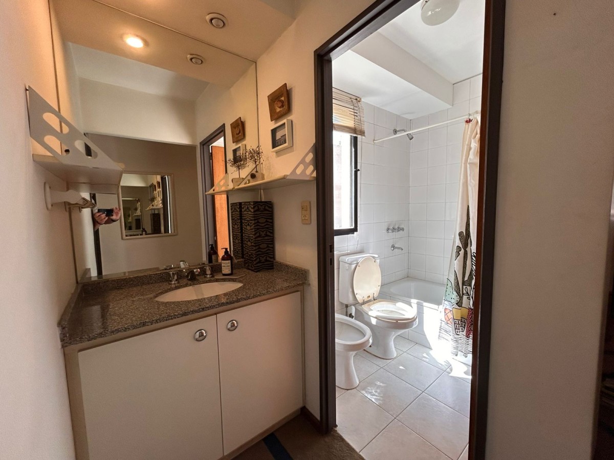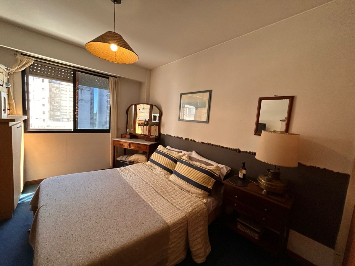 Semipiso de un dormitorio a una cuadra del río, luminoso con balcón al frente, ubicado en cuarto piso. Con cochera.