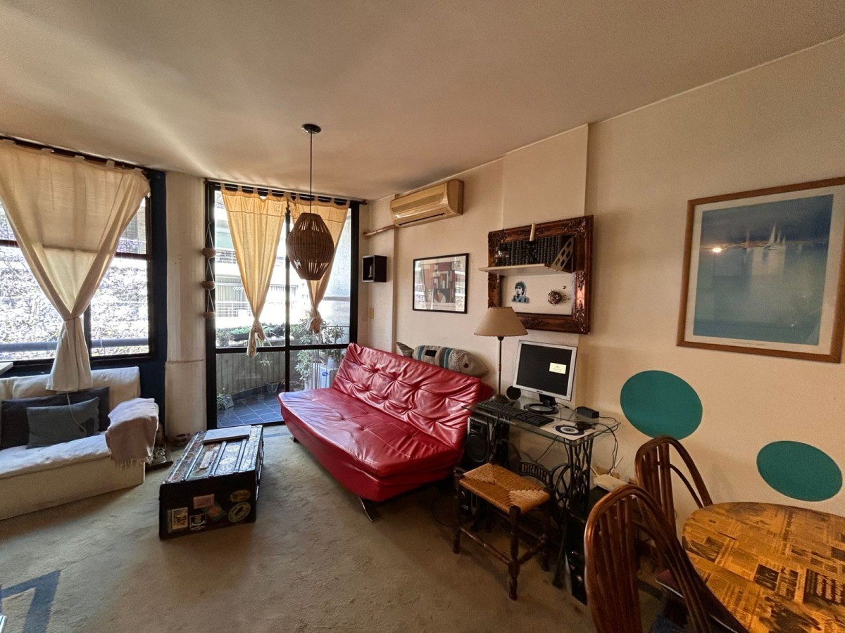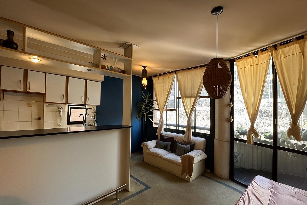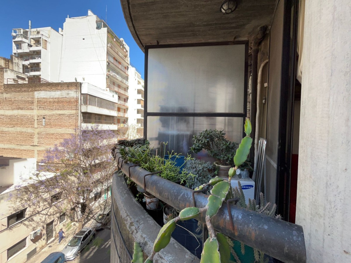 Semipiso de un dormitorio a una cuadra del río, luminoso con balcón al frente, ubicado en cuarto piso. Con cochera.