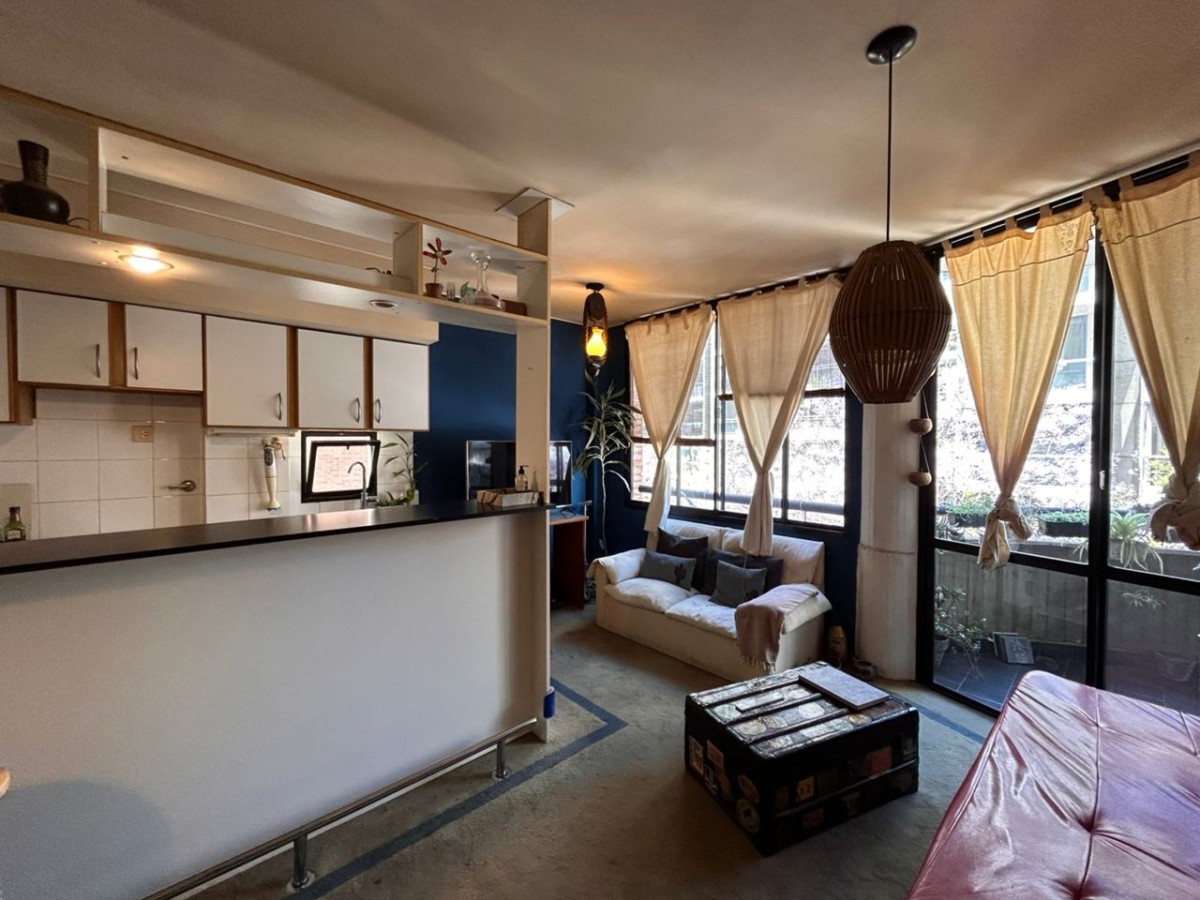 Consta de ingreso al estar comedor, con cocina semi integrada a través de barra, la misma cuenta con bajomesada y alacenas; sector de lavadero. Dormitorio con placard con interiores. Ante baño y baño completo con bañera. Ventilación cruzada.