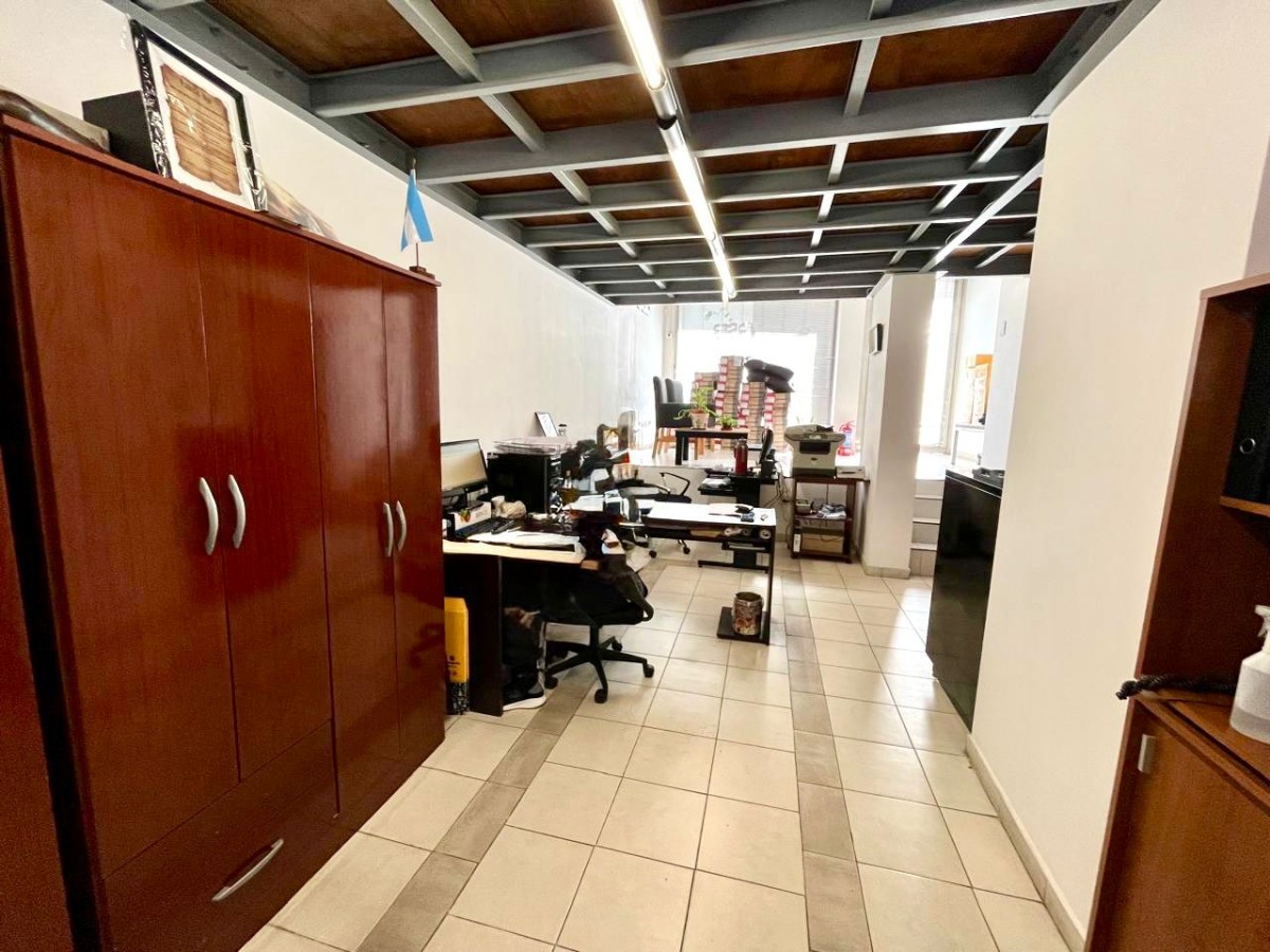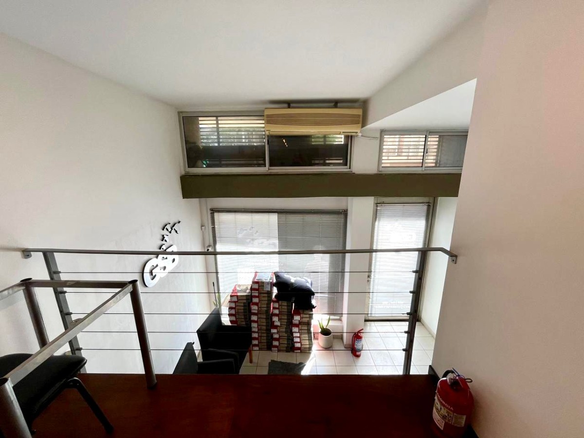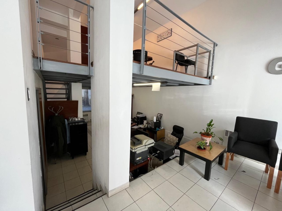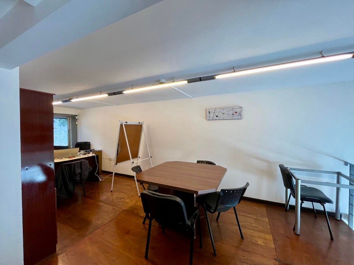Oficina al frente desarrollada en PB que cuenta con primer planta de 42.47 m2 mas entrepiso de 26.48 y patio exclusivo de 36.89. Baño privado y kitchenette