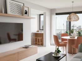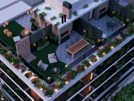 Desarrollado en 4 pisos, con dos unidades de un dormitorio y una de dos dormitorios por piso. Cuenta con amenities en terraza de uso común, solarium y parrillero, ubicados en la azotea. Opción de adquirir terrazas exclusivas.