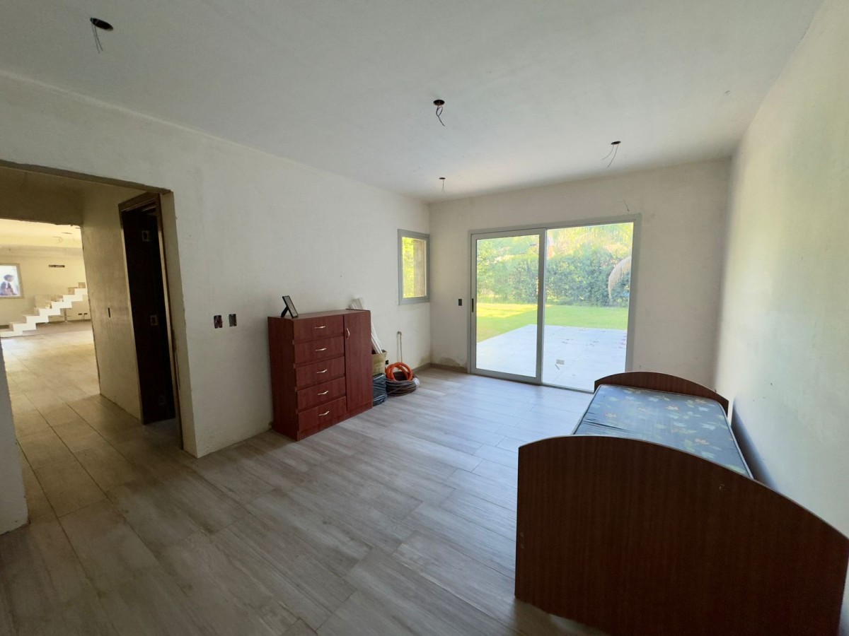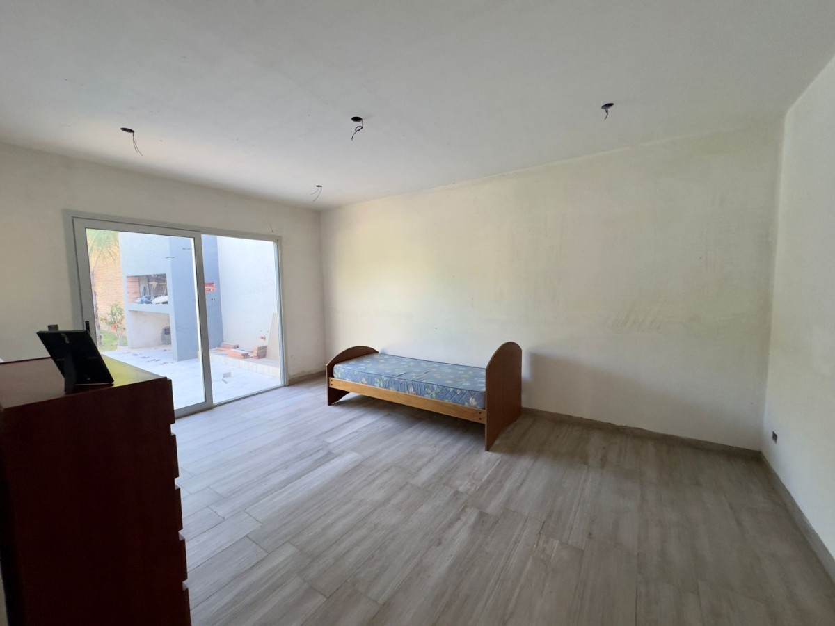 Baño completo y dormitorio, o posibilidad de tranformar el ambiente en quincho, ya que tiene salida al jardin y sector parrillero.