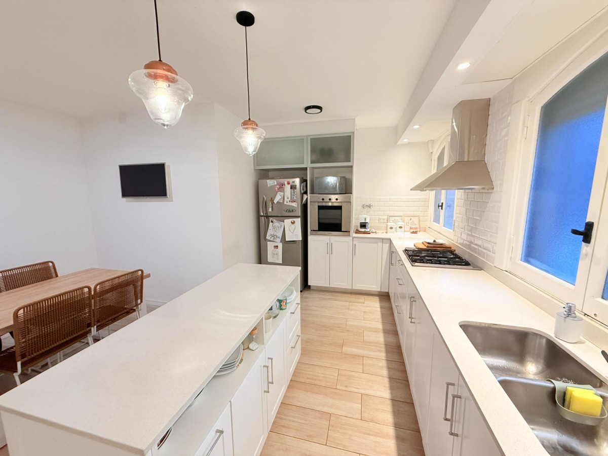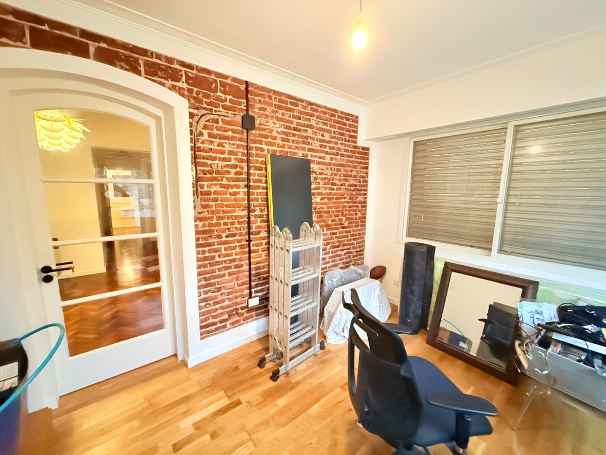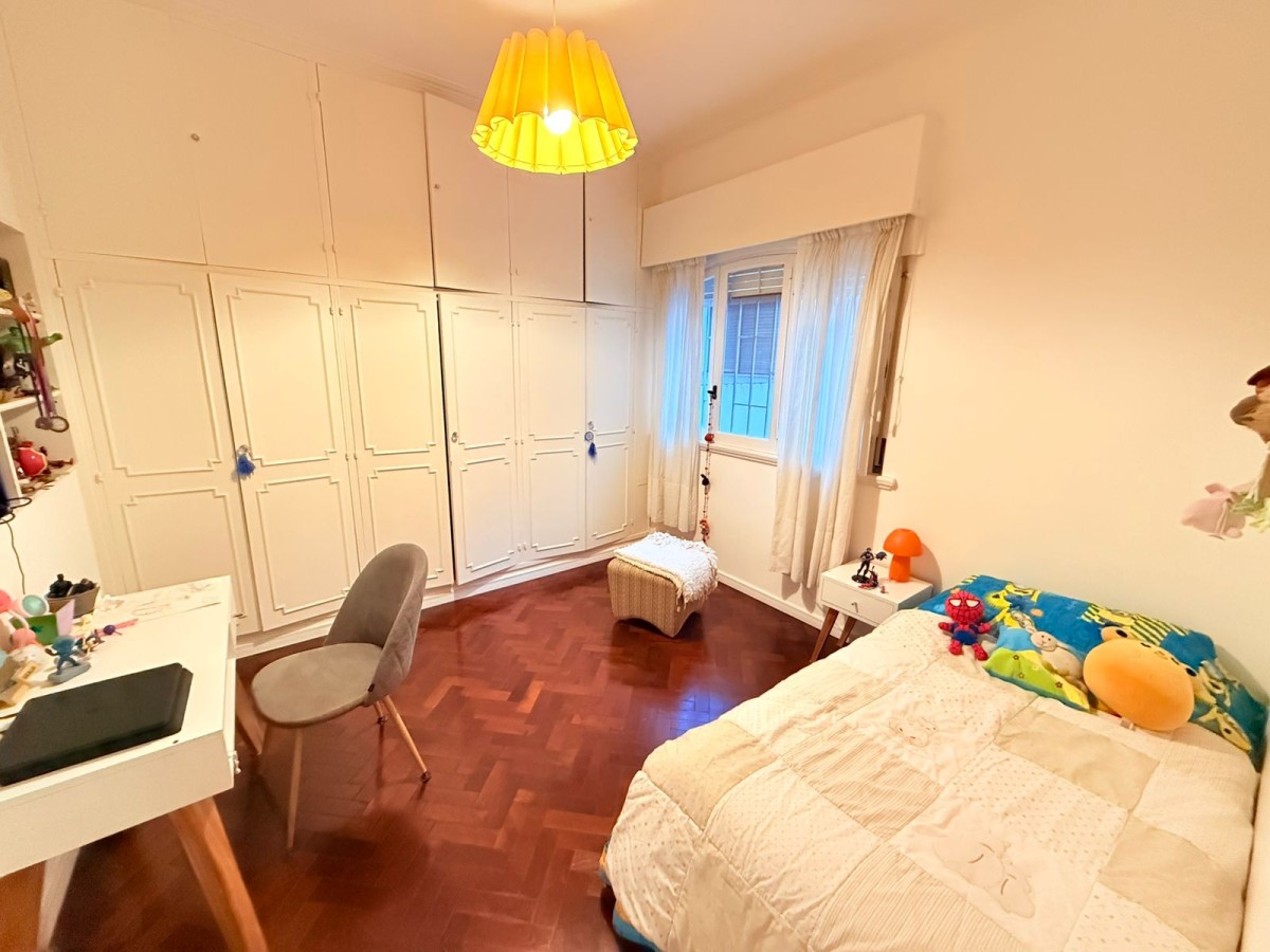 Casa desarrollada en Planta alta de 200 m², reciclada con calidad y estilo. Cuenta  amplio living con salida a balcon a la calle; cocina comedor con isla, 2 baños , uno completo con bañera, el otro con sanitarios completos ( con posibilidad de armar ducha); 4 dormitorios muy amplios , 3 con placares con interiores , el cuarto actualmente utilizado para escritorio. Patio de uso exclusivo con dependencia de servicio y parrillero.