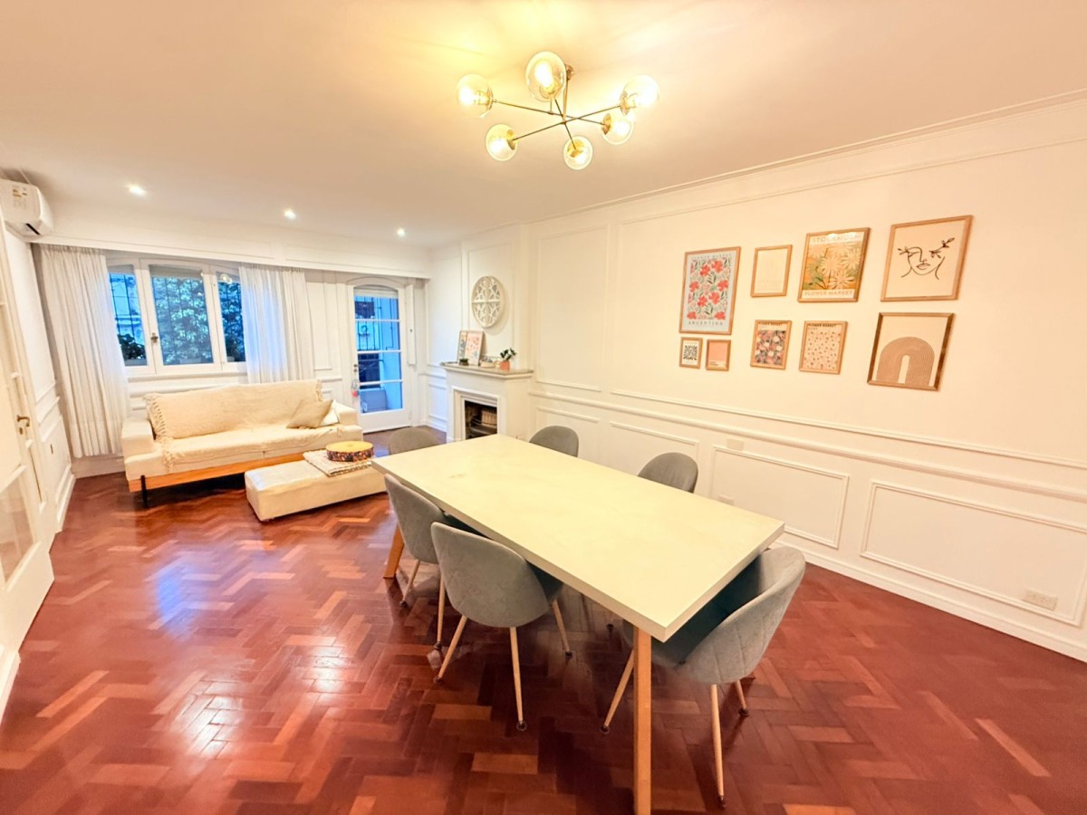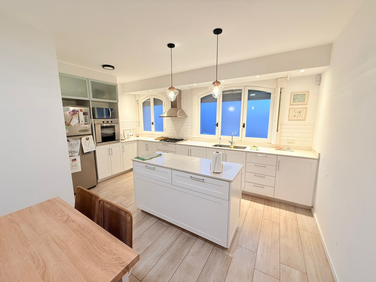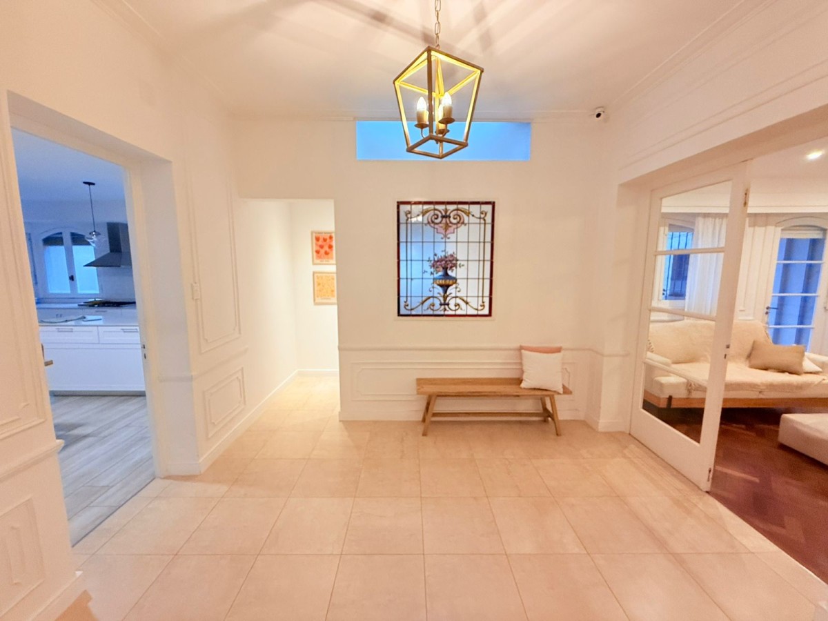 Casa desarrollada en Planta alta de 200 m², reciclada con calidad y estilo. Cuenta  amplio living con salida a balcon a la calle; cocina comedor con isla, 2 baños , uno completo con bañera, el otro con sanitarios completos ( con posibilidad de armar ducha); 4 dormitorios muy amplios , 3 con placares con interiores , el cuarto actualmente utilizado para escritorio. Patio de uso exclusivo con dependencia de servicio y parrillero.