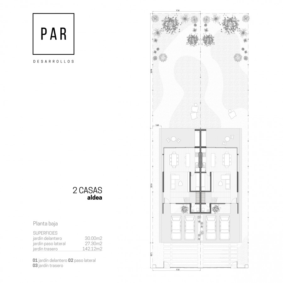 Cuenta con dos cocheras semicubiertas.  Jardín frontal de 30 m2;  paso lateral de servicio y jardín al fondo de 7,5 x 19m2 .-