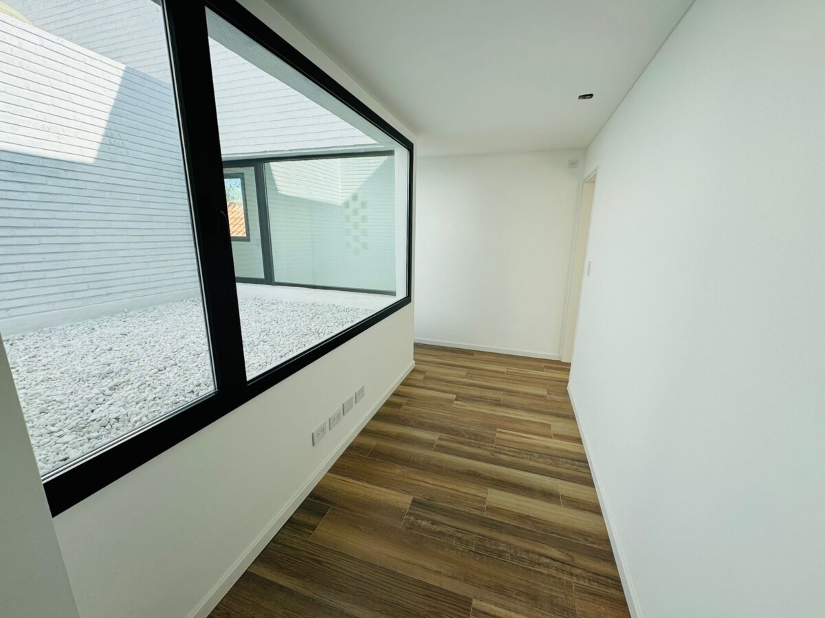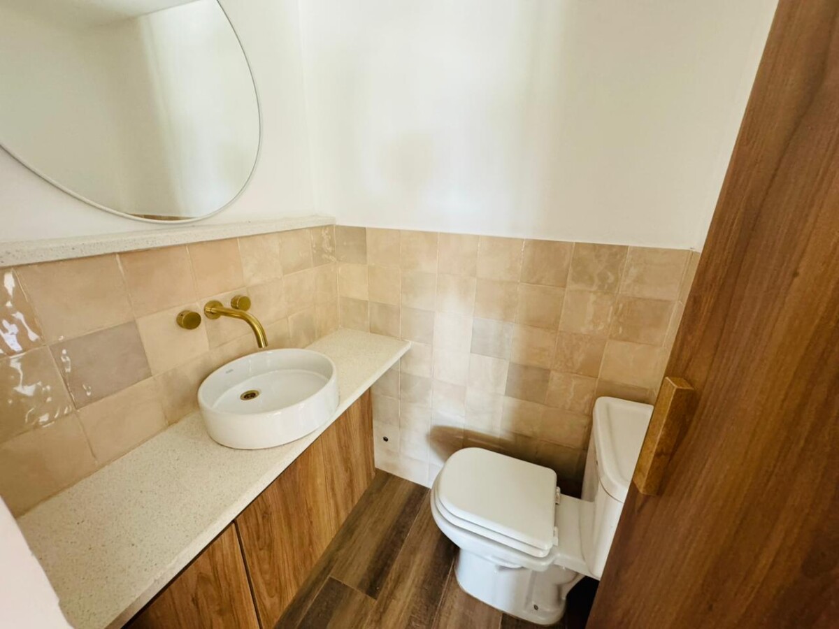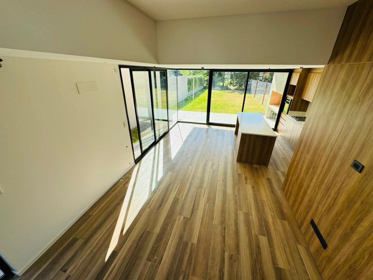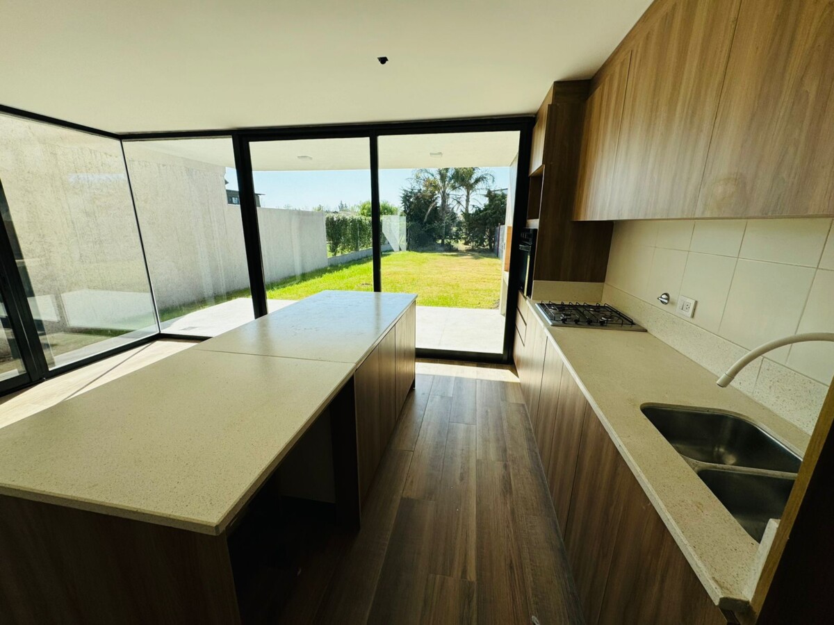 En PB, ingreso a amplio estar comedor con pisos vinílicos símil madera y salida a galería semicubierta con parrillero. Cocina separada por isla con espacio de guardado; lavadero independiente y toilette de recepción.