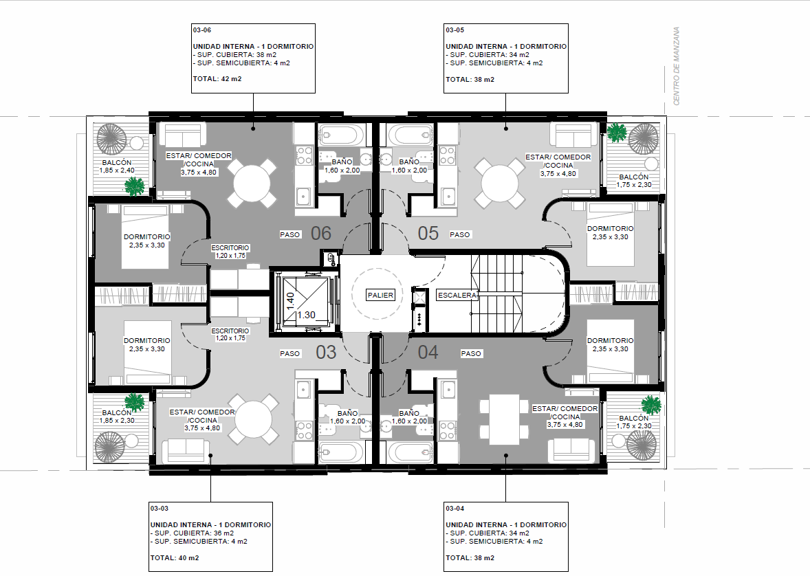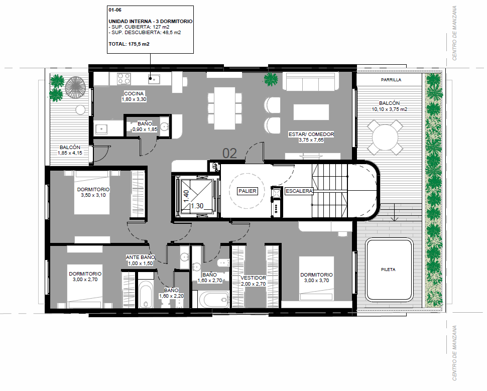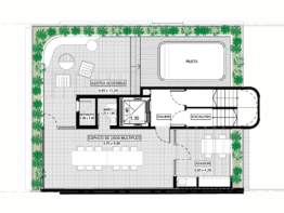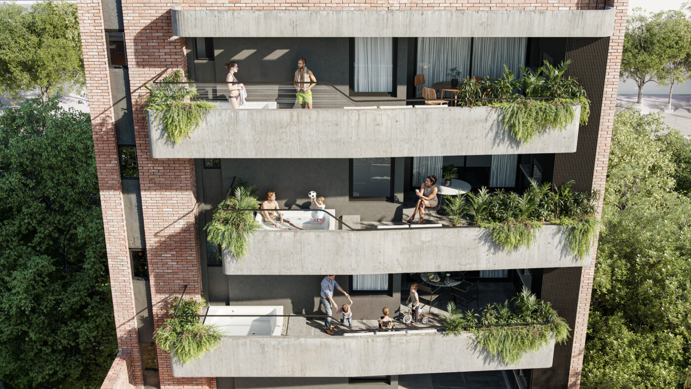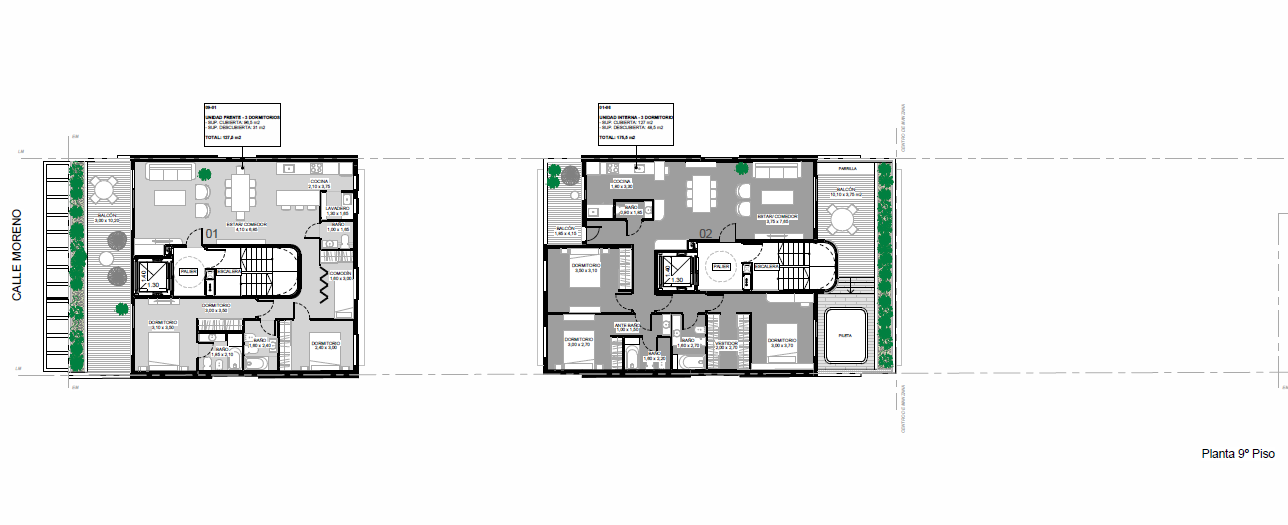 Las unidades del piso 9 cuentan con ingreso exclusivo. El departamento de 3 dormitorios tiene pileta exclusiva.