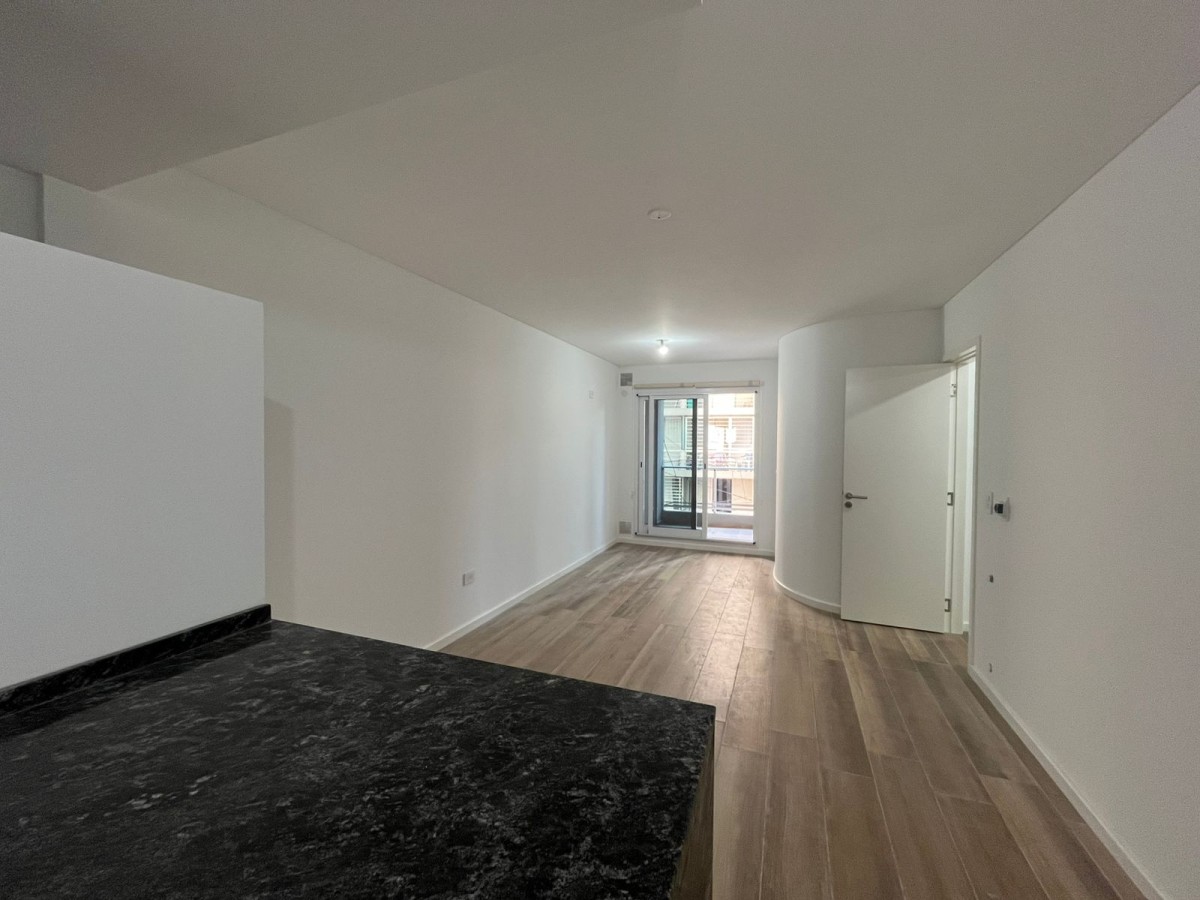 El ingreso a ambiente único, vestidor. Baño completo con bañera. La cocina cuenta con alacenas y bajo mesadas. Los pisos del departamento son de porcelanato; aberturas de aluminio con DVH. Pico para calefactor. Griferías y sanitarios de primeras marcas.