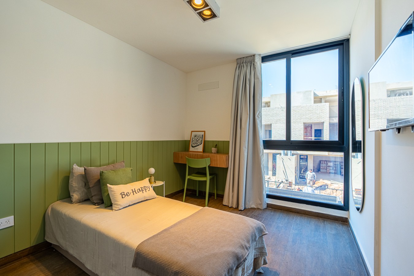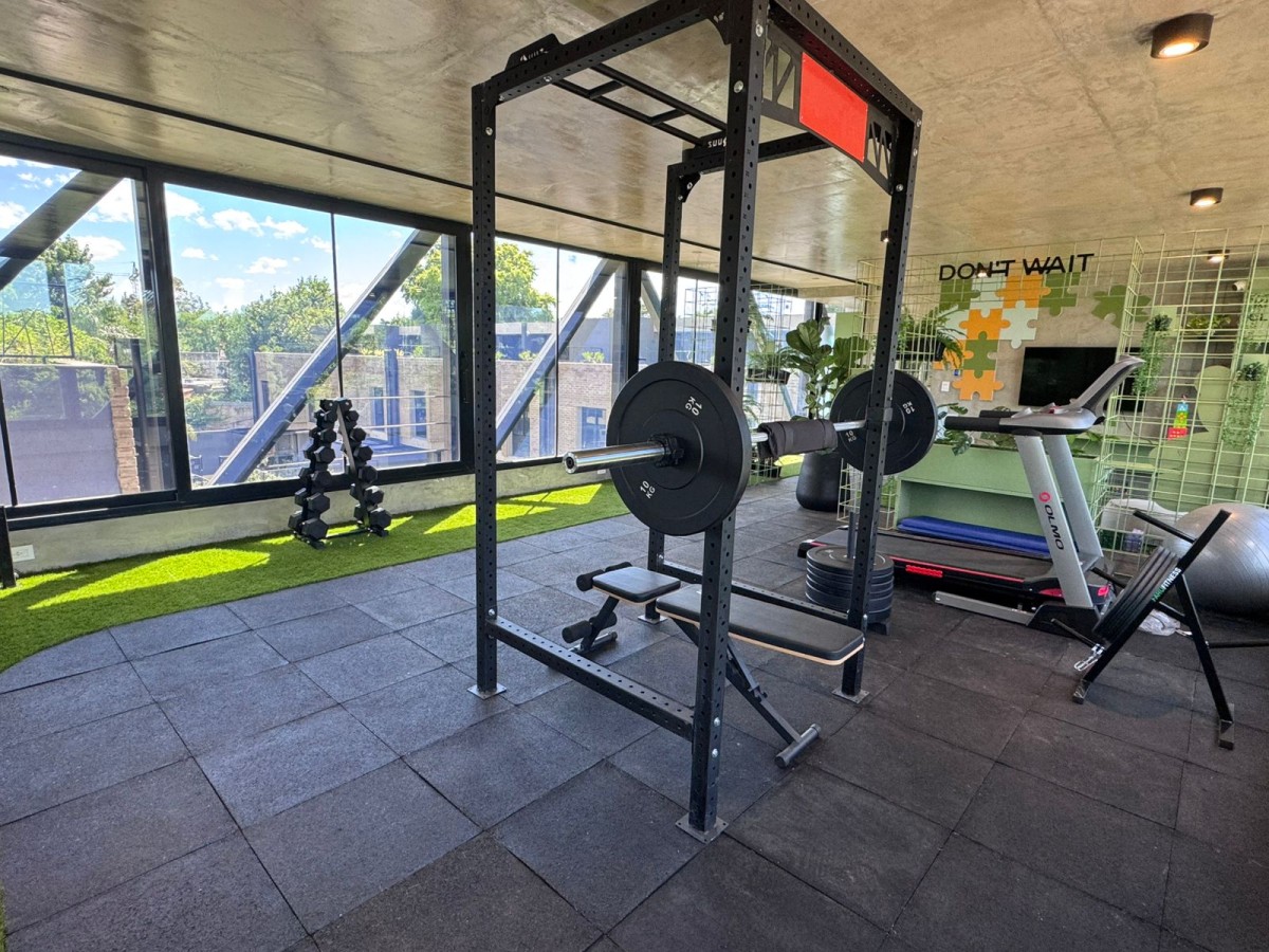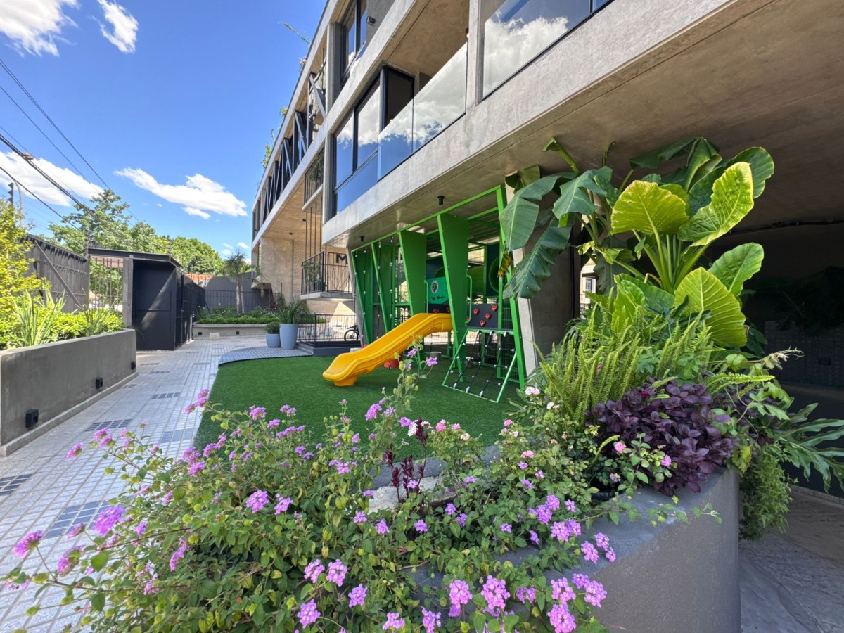 El complejo tiene terraza de uso común con solárium, gimnasio, y plaza intervenida por Crucijuegos.