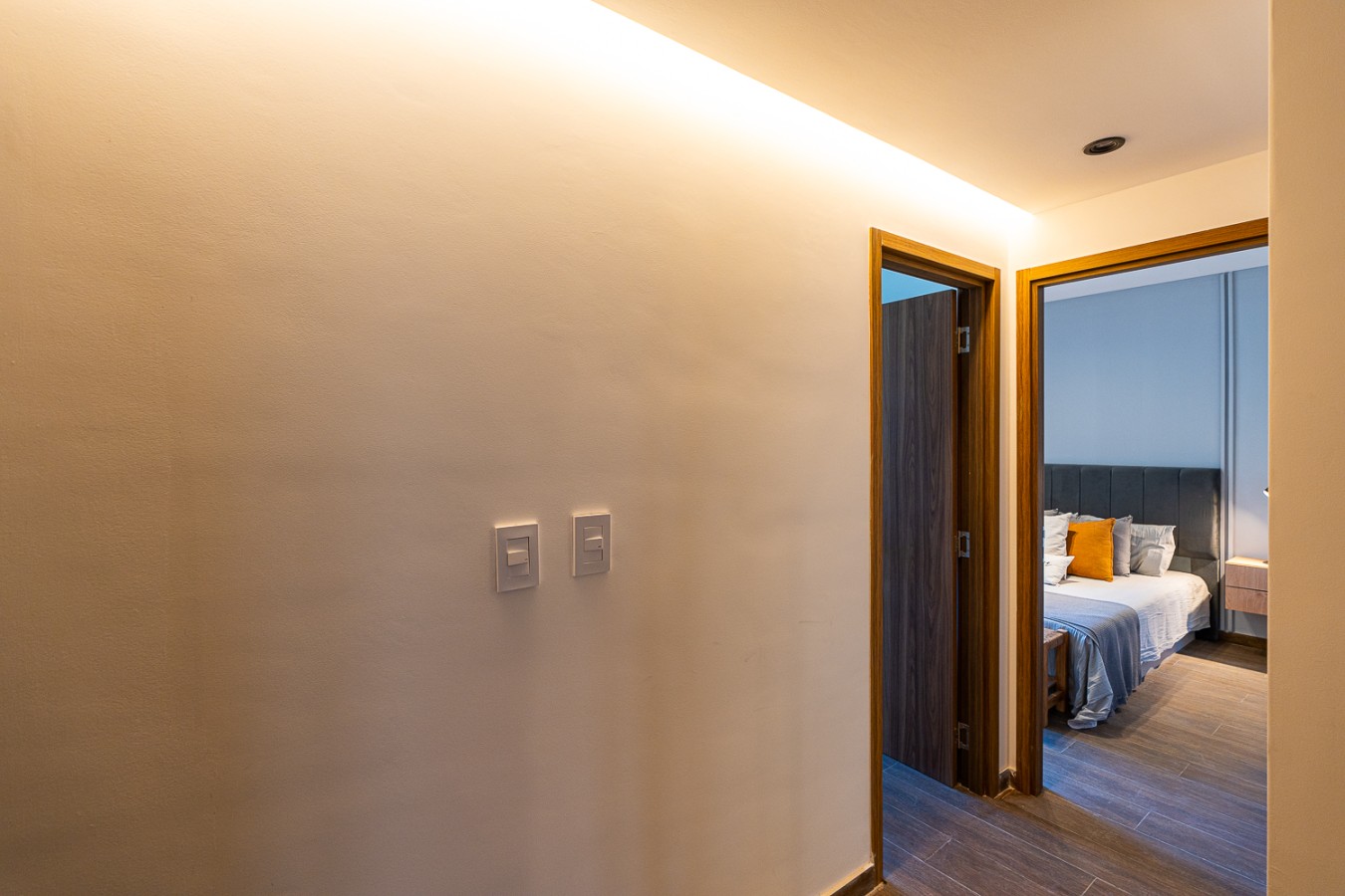 Primer piso: dormitorio principal con vestidor y baño en suite; segundo dormitorio con interiores de placar y baño completo con bañera.